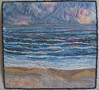 ALL this wonderful inspiration arrived in my mail box the other day. These goodies came from Deb who was clearing excess "stuff" out of her studio.I couldn't wait to get out of bed this morning to play with that pile "stuff". I separated out wonderfully dyed bits of fabric for fall trees in the maybe Smoky Mountain series, some pieces went into the Lake series bag, and I pulled "stuff" for this idea.